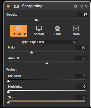 Sharpened slightly with the Fix Focus Preset